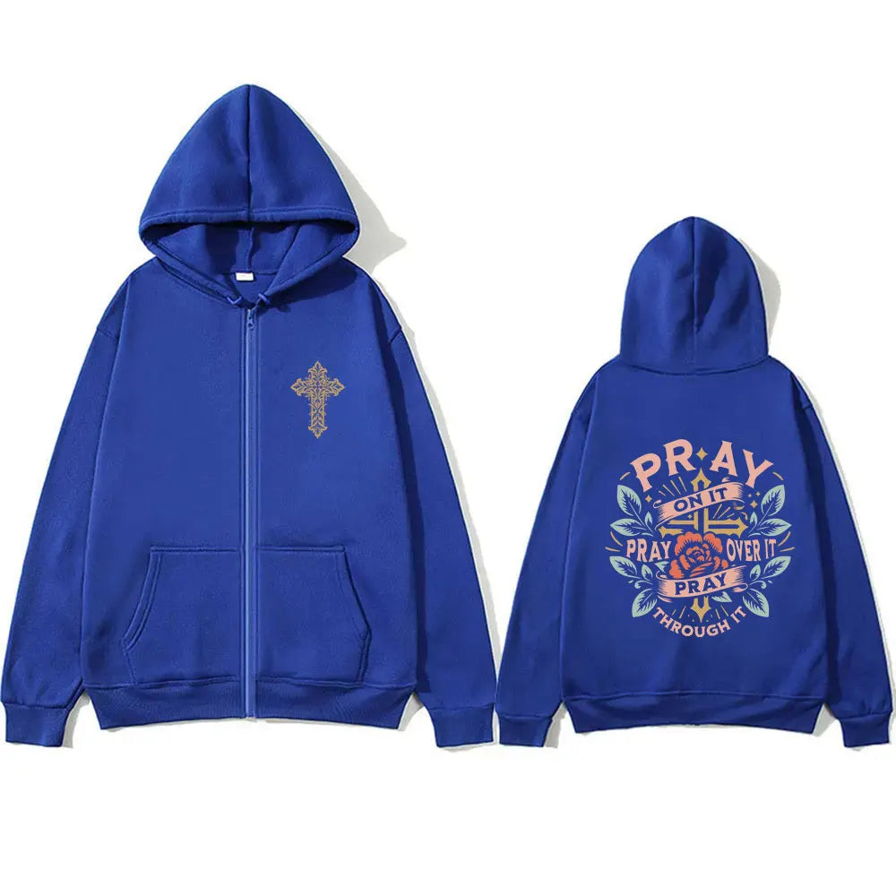 Pray on It Pray Over It Pray Through It - Zipper Hoodie Oversized